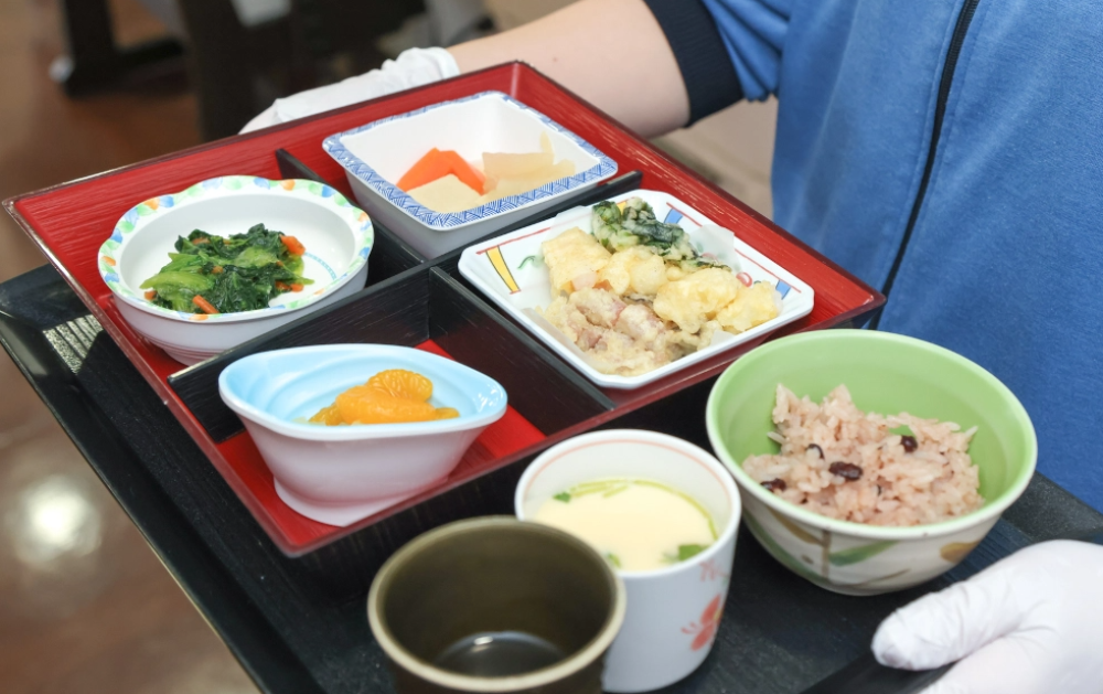オークピア鹿芝では生活の基本とも言われる食事に関しても強くこだわっております。管理栄養士が利用者様の体調や栄養状態に応じた安心安全な献立をご提案することはもちろん、季節や旬の美味しさを楽しんでいただけるメニューづくりにも取り組んでいます。
